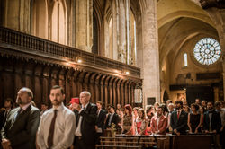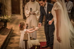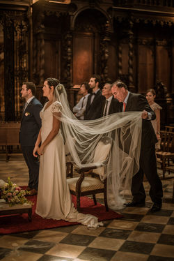 La iglesia renacentista más bonita de Madrid. Calcetines de colores para los amigos del novio. Meseros con una acuarela de Cooper, su perro también presente.